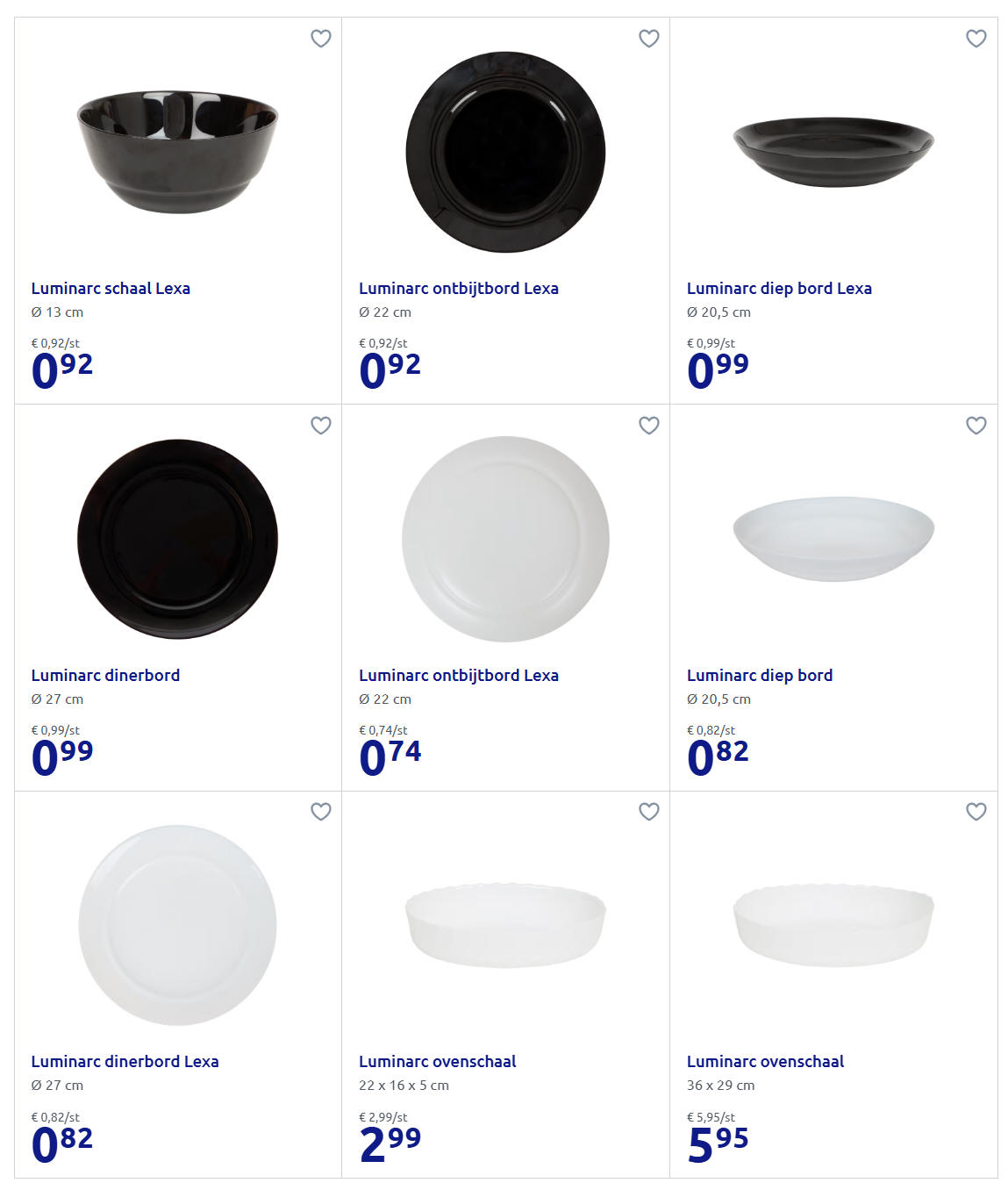 Luminarc, Arcopal, Cristal d'Arques Paris, Arcoroc en Chef&Sommelier .Gamma nu bij Action te verkrijgen is: