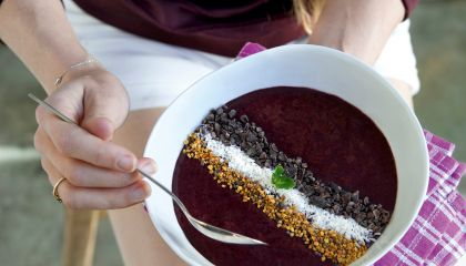speltbloem, rode biet, avocado, ahornsiroop, paranoten, yoghurt