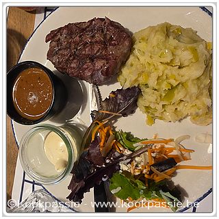 1x Hoofdgerecht: Rib eye 350g (33.50)