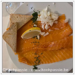 Aperitiefhapje : gerookte zalm met croutontjes en een