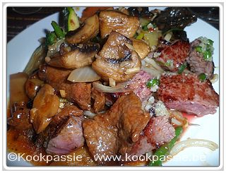 lekkere biefstuk. Ook de sausen van de wok zijn echt watersausen.