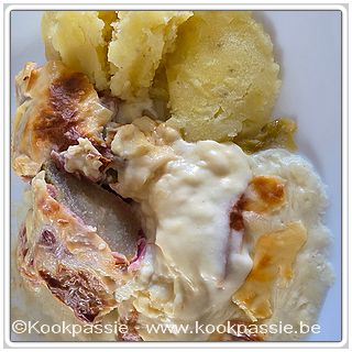 Kippengehaktballetjes met witloof en prei in bechamelsaus