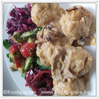 Easy Salisbury Kipballetjes met oesterzwammen, puree (Restje uit vriezer) met rauwe groentjes